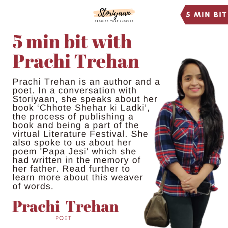 Prachi Trehan is an author and a poet. In a conversation with Storiyaan, she speaks about her book ‘Chhote Shehar ki Ladki’, the process of publishing a book and being a part of the virtual Literature Festival. She also spoke to us about her poem ‘Papa Jesi’ which she had written in the memory of her father. Read further to learn more about this weaver of words.